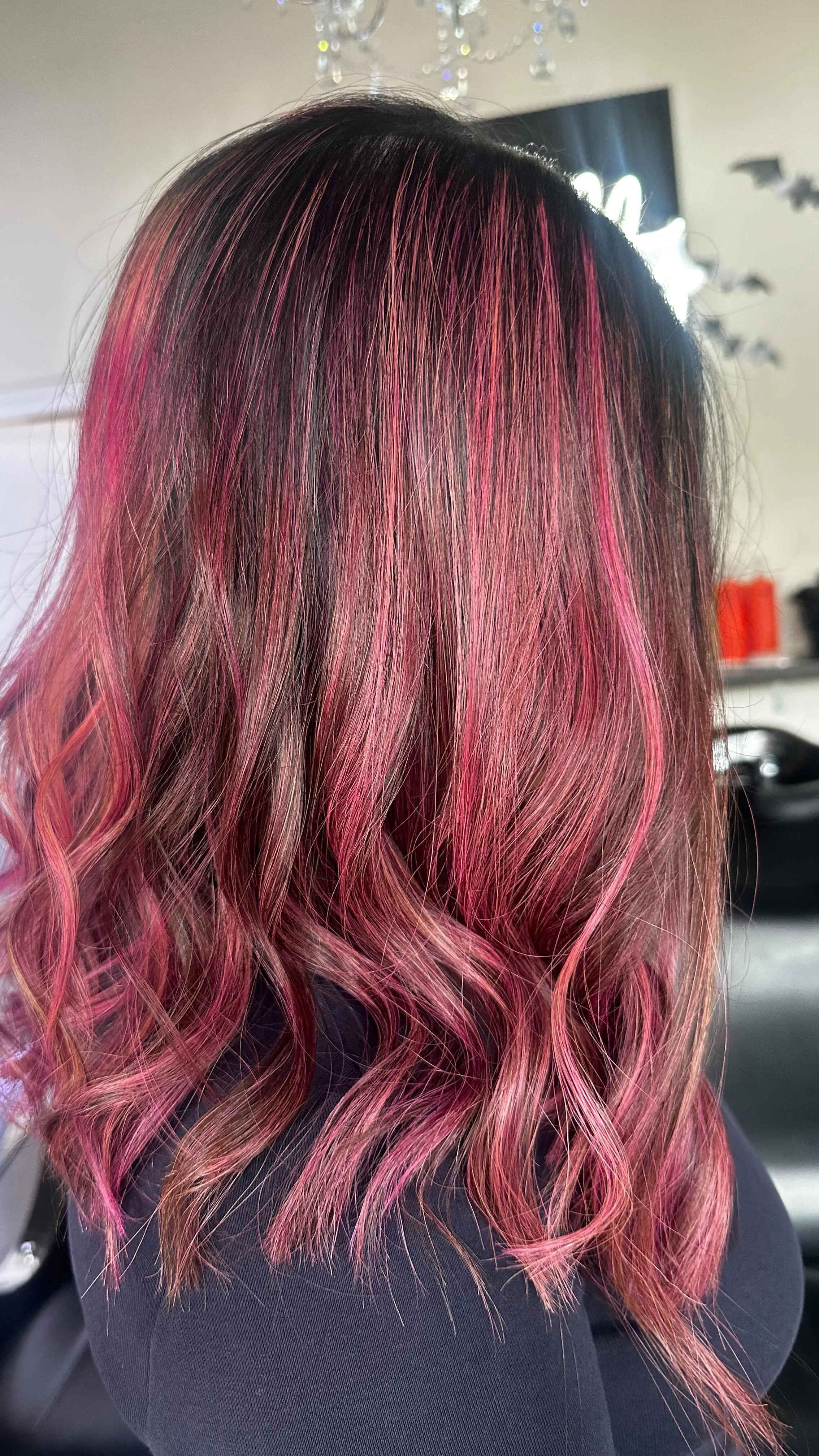 Behind the chair: Karissa has been a stylist for 7 years she loves anything rich and dimensional! Lived in lightening, brunettes, any shades or red copper or violets ! When Karissa is not behind the chair You can typically find her grabbing good patio eats and drinks camping /road tripping with her partner and taking care of my 3 fur babies.